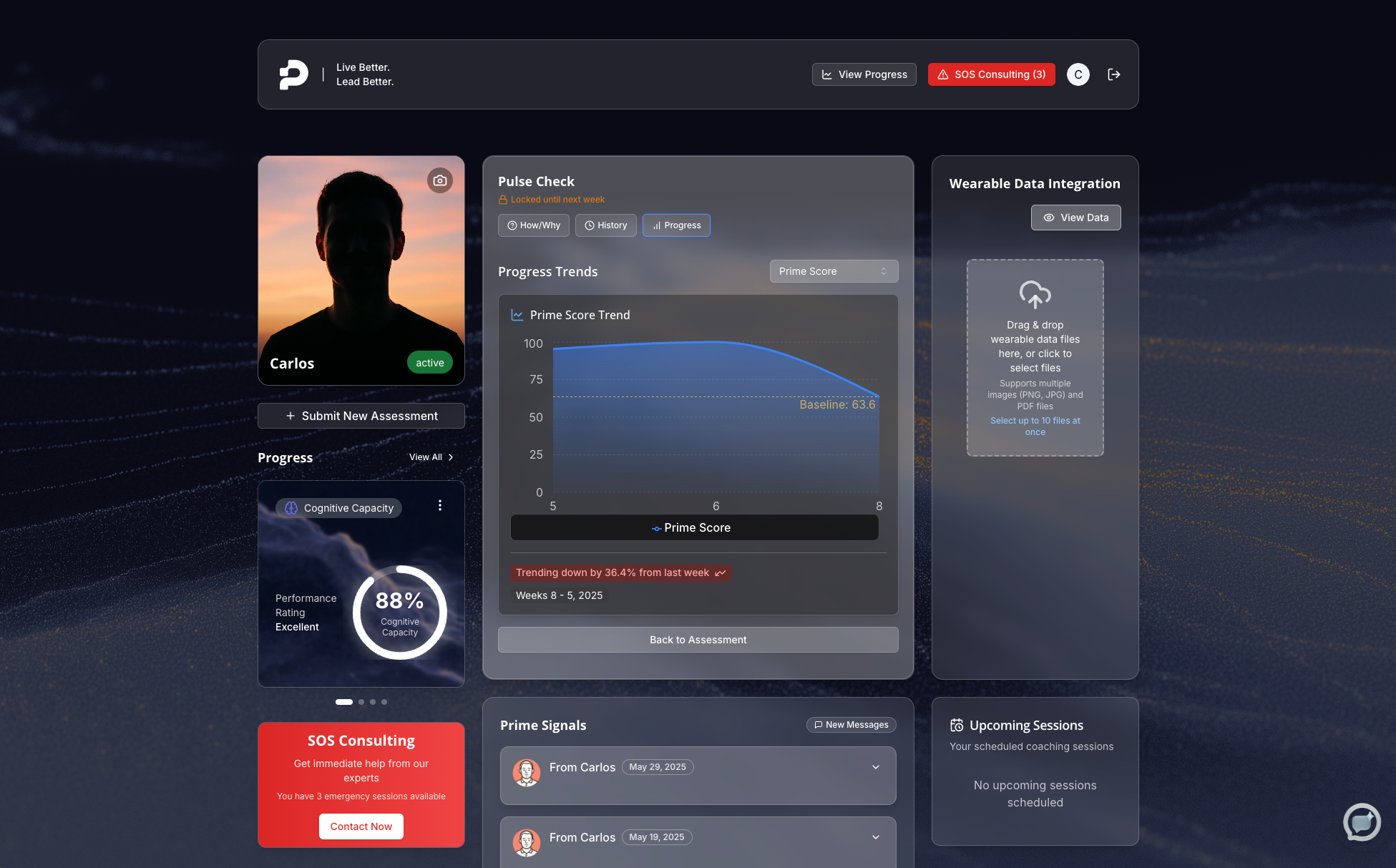 Traditional coaching focuses primarily on behavioral change through conversation. We integrate neuroscience-backed cognitive optimization, physical wellbeing protocols, and measurable data tracking. Think of it as executive coaching enhanced by brain science and personalized health optimization.